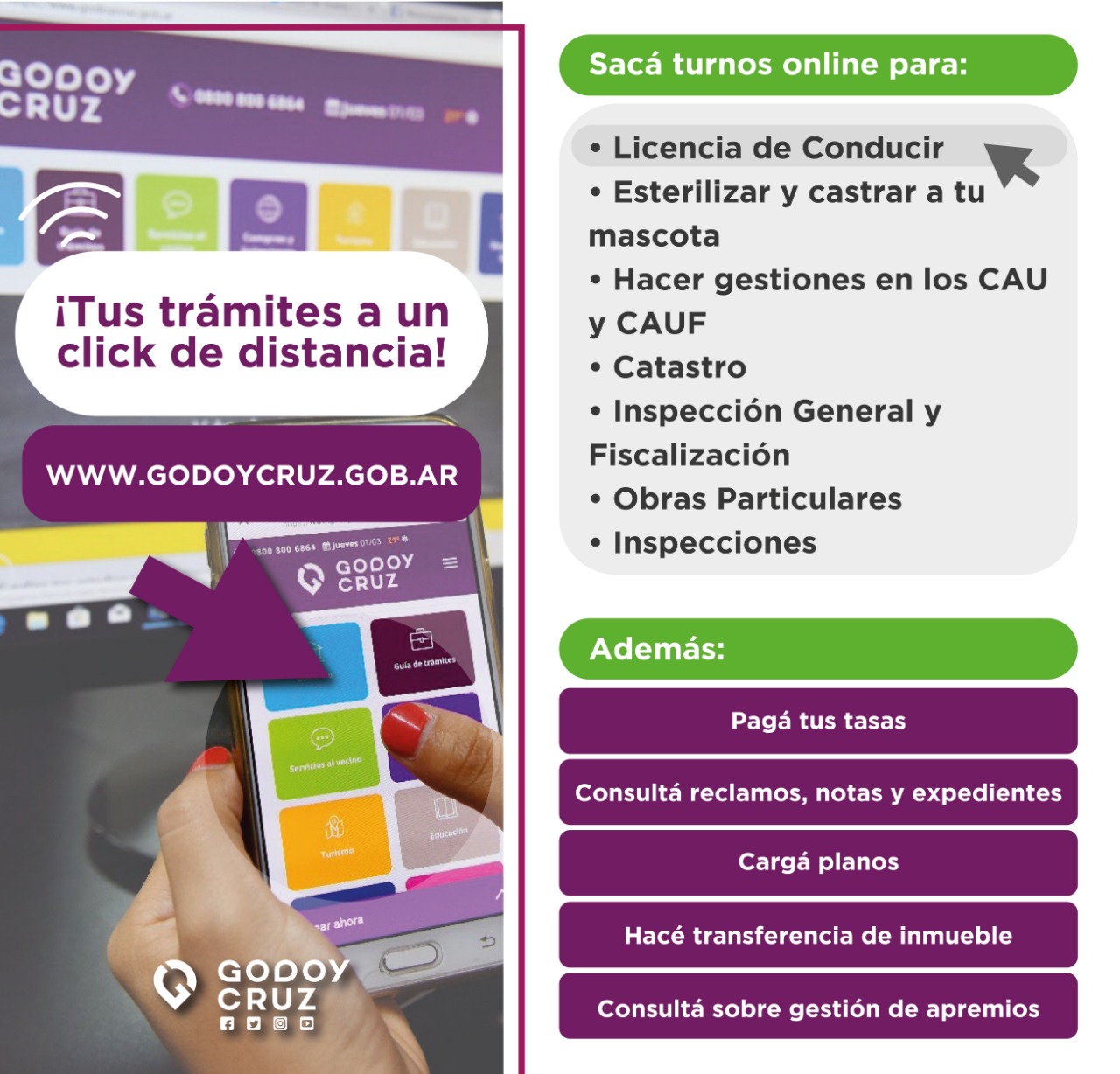 La Municipalidad recuerda que en www.godoycruz.gob.ar pueden hacer gestiones desde su casa y con cualquier dispositivo móvil