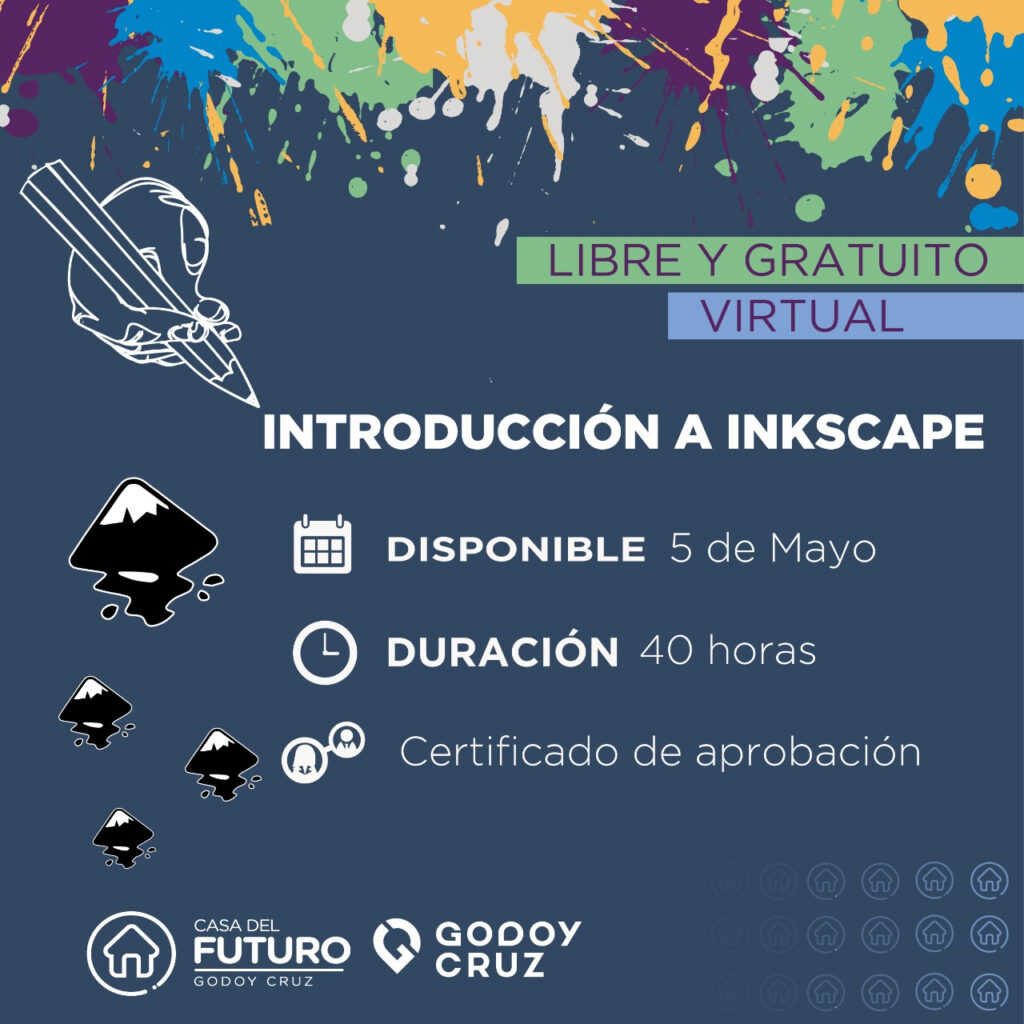Introducción al manejo de Inkscape: permite crear diseños gráficos de alta calidad para la web o medios impresos. Inkscape es una herramienta de dibujo vectorial de fácil utilización y gratuita. El mismo tiene duración de 1 mes y está dividido en 8 encuentros con una carga horaria de 40 horas.