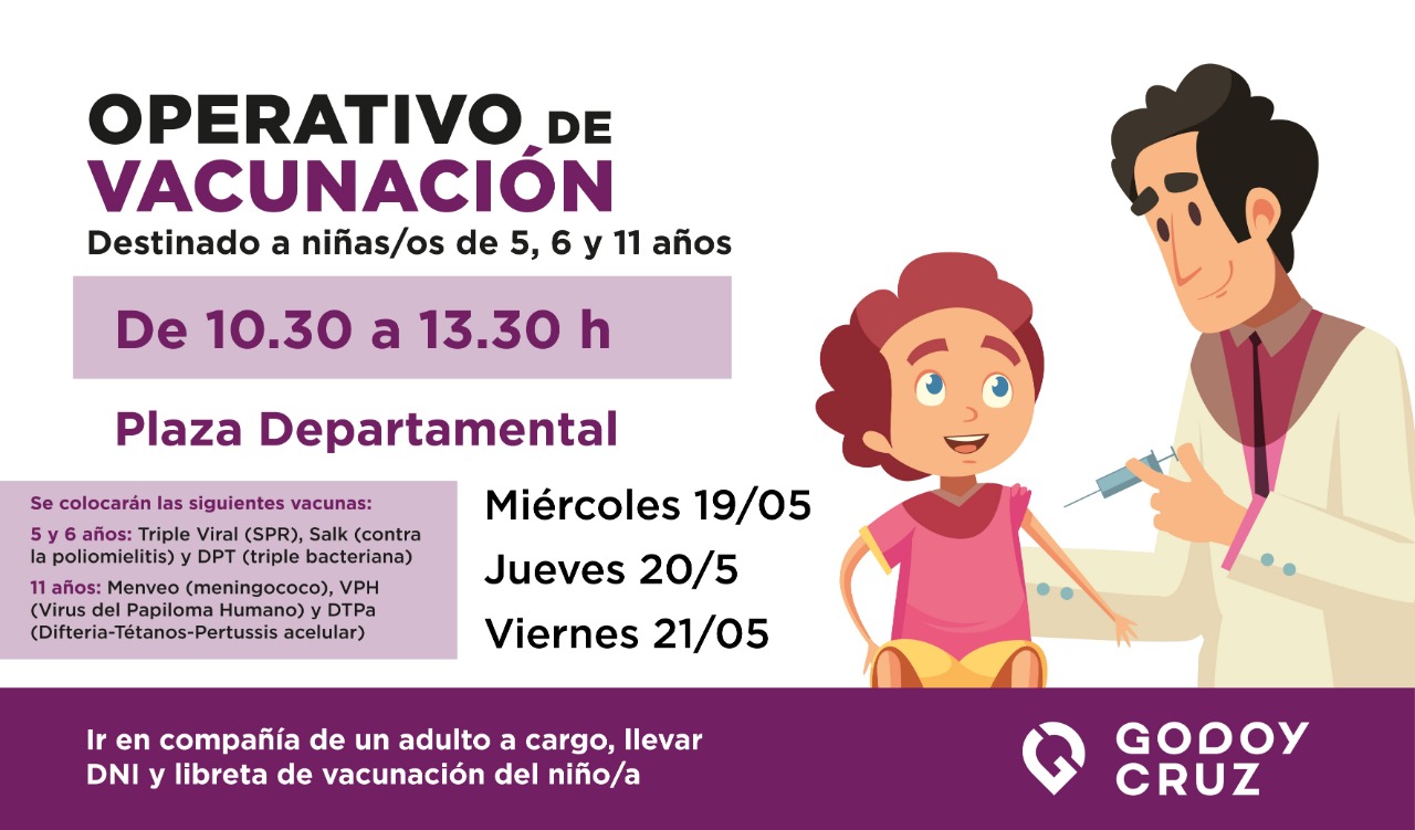 El Móvil de Salud para la vacunación de niños y niñas estará los días 19, 20 y 21 de mayo de 10.30 a 13.30 en la Plaza Departamental (Lavalle y Perito Moreno).
