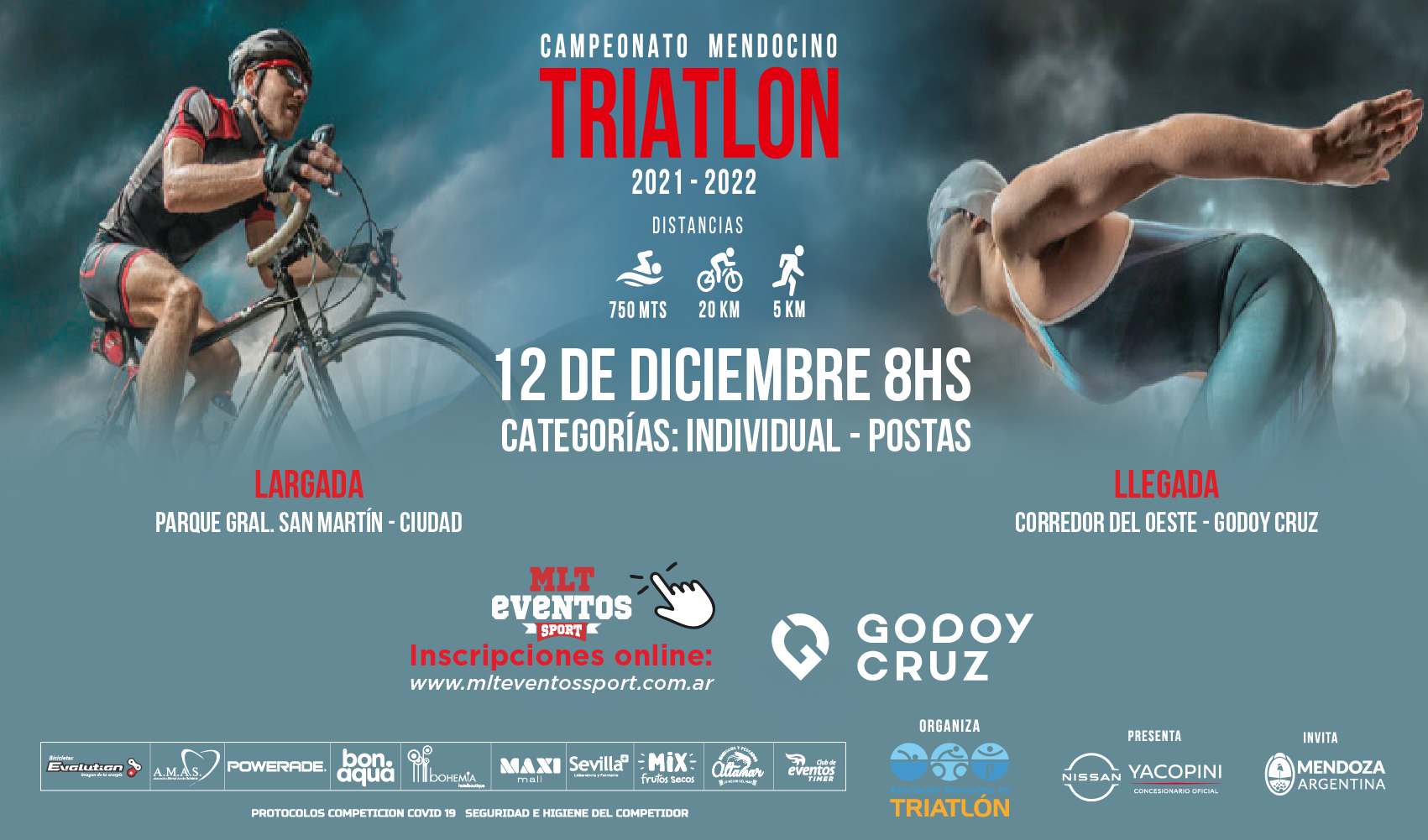 Podrán participar personas desde los 14 hasta los 79 años y estarán divididos en categorías. Las inscripciones están habilitadas hasta el 8 de diciembre en Triatlón de Godoy Cruz.